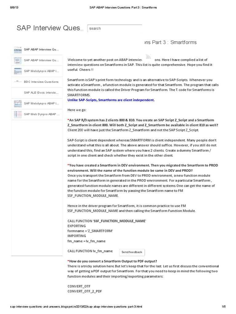 interview questions on Smartforms in SAP. This list is quite comprehensive. Hope you find it