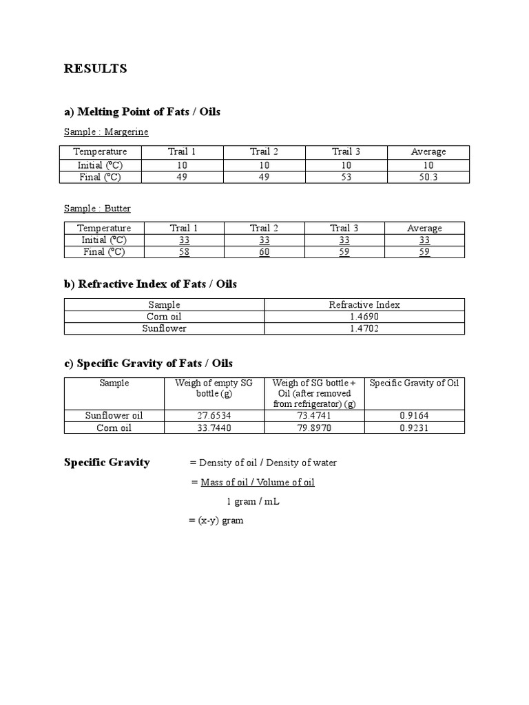 c) Specific Gravity of Fats / Oils