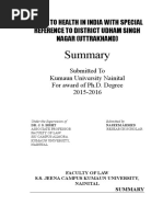Movement, there has been no legislation of a Right to Health Act in any states of India. This