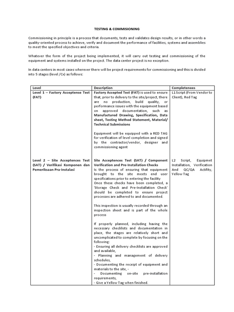 • Pre-commissioning / pre-functional