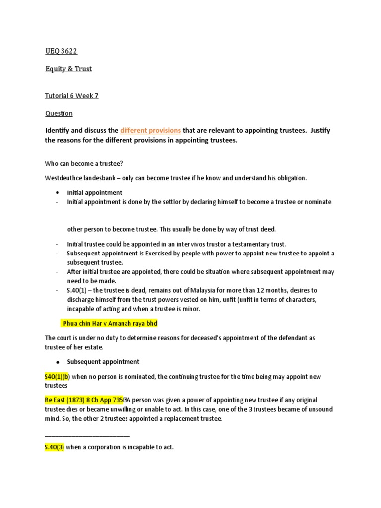 Identify and discuss the different provisions that are relevant to appointing trustees. Justify