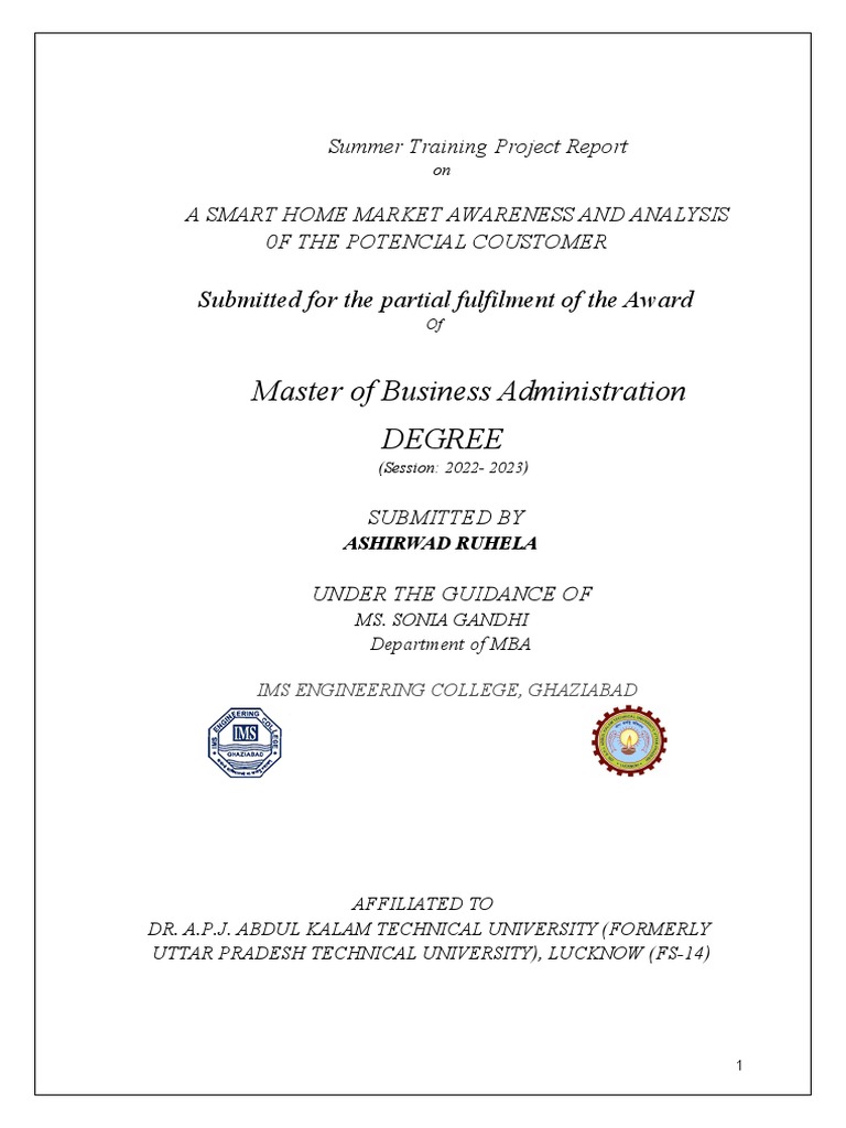 student of MBA 3rd semester during session 2021-2023. The summer training project report