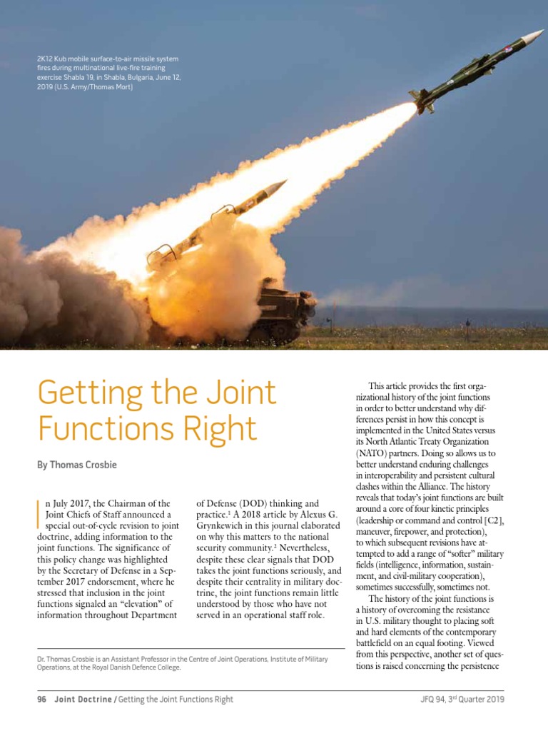 96 Joint Doctrine / Getting the Joint Functions Right JFQ 94, 3rd Quarter 2019