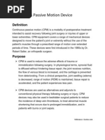 management. CPM is a machine that provides passive ROM exercises of the knee joint in a pre-