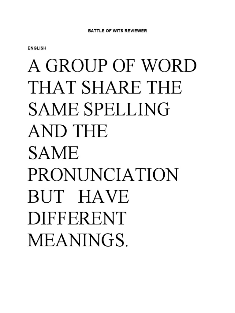 1. A GROUP OF WORD THAT SHARE THE SAME SPELLING AND THE SAME