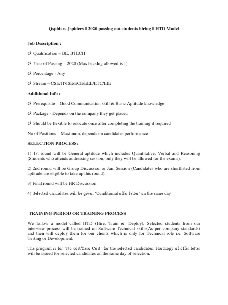 Qspiders Jspiders || 2020 passing out students hiring || HTD Model