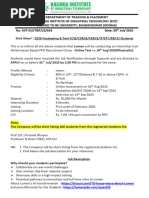 for the training will be intimated 10 days before the training starts.