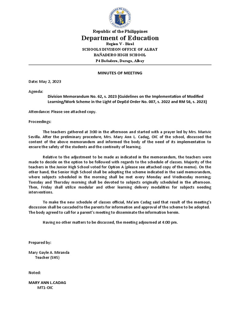 To make the new schedule of classes official, Ma’am Cadag said that result of the meeting’s