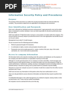 I. POLICY A. It is the policy of ABC COMPANY that information, as defined hereinafter, in all its forms--written, spoken, recorded electronically or printed--will be protected from accidental or intentional unauthorized modification, destruction or disclosure throughout its life cycle. This protection includes an appropriate level of security over the equipment and software used to process, store, and transmit that information. At each entity and/or department level, additional policies, standards and procedures will be developed detailing the implementation of this policy and set of standards, and addressing any additional information systems functionality in such entity and/or department. All departmental policies must be consistent with this policy.