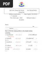 Grade: 2 (Prathomsuksa 2) Subject: English Mark: 20 Time: 50 minutes