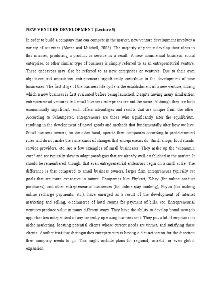NEW VENTURE DEVELOPMENT (Lecture 5)