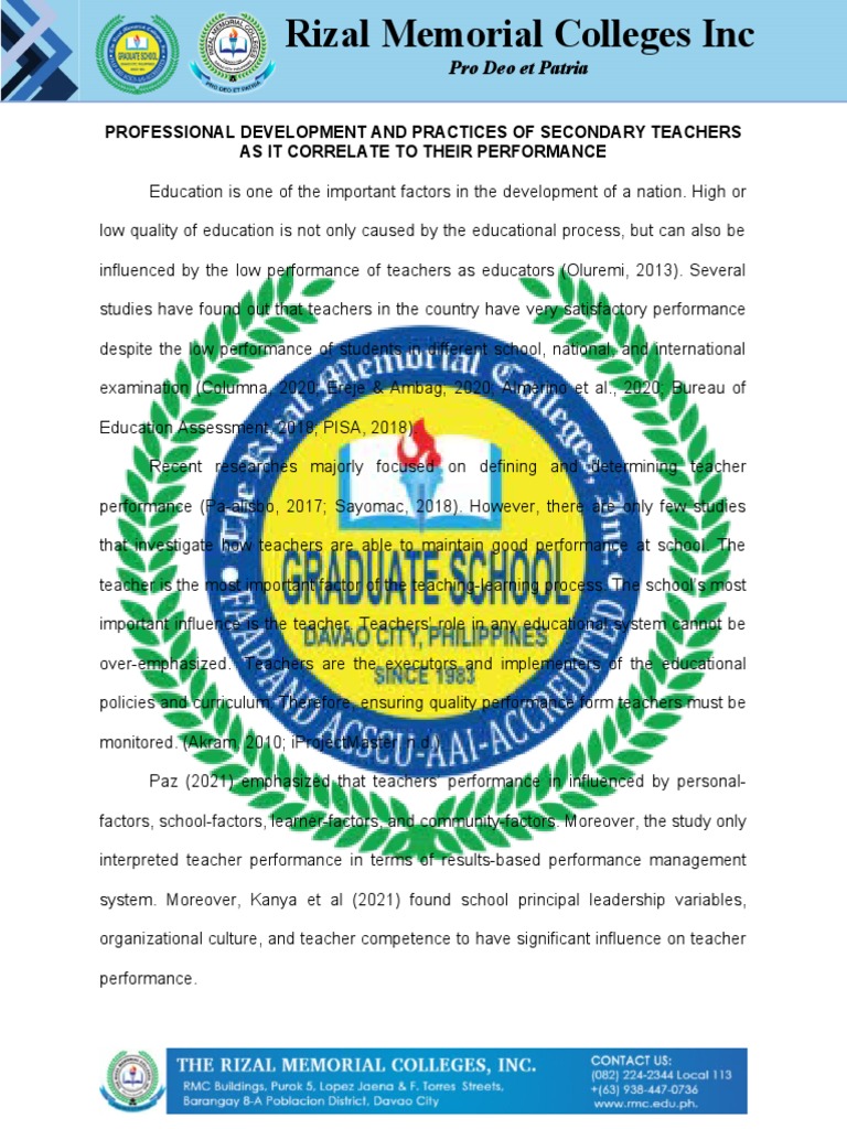 Paz (2021) emphasized that teachers’ performance in influenced by personal-