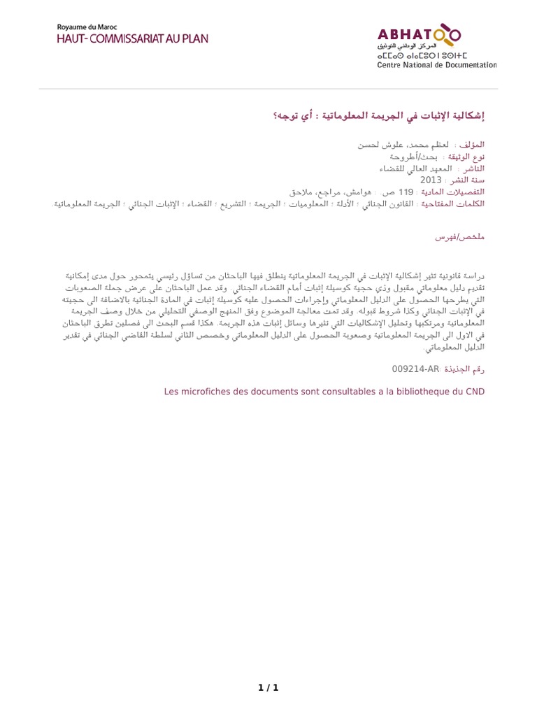 اﻟﻜﻠﻤﺎت اﻟﻤﻔﺘﺎﺣﻴﺔ :اﻟﻘﺎﻧﻮن اﻟﺠﻨﺎﺋﻲ ؛ اﻷدﻟﺔ ؛ اﻟﻤﻌﻠﻮﻣﻴﺎت ؛ اﻟﺠﺮﻳﻤﺔ ؛ اﻟﺘﺸﺮﻳﻊ ؛ اﻟﻘﻀﺎء ؛ اﻹﺛﺒﺎت اﻟﺠﻨﺎﺋﻲ ؛ اﻟﺠﺮﻳﻤﺔ اﻟﻤﻌﻠﻮﻣﺎﺗﻴﺔ.