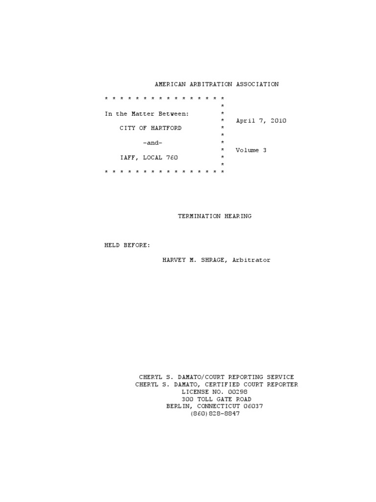 CHERYL S. DAMATO, Certified Court Reporter LICENSE NO. 00298 300 TOLL GATE ROAD BERLIN, Connecticut 06037 (860)828-8847 recalled as a witness by the Union.