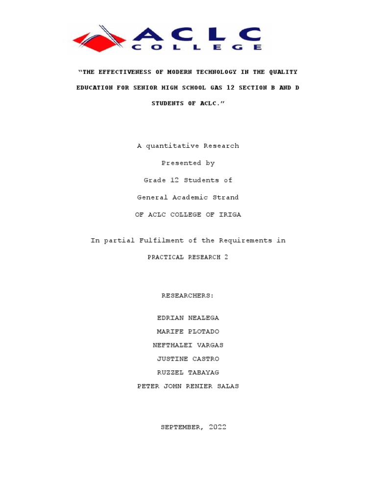 “THE EFFECTIVENESS OF MODERN TECHNOLOGY IN THE QUALITY