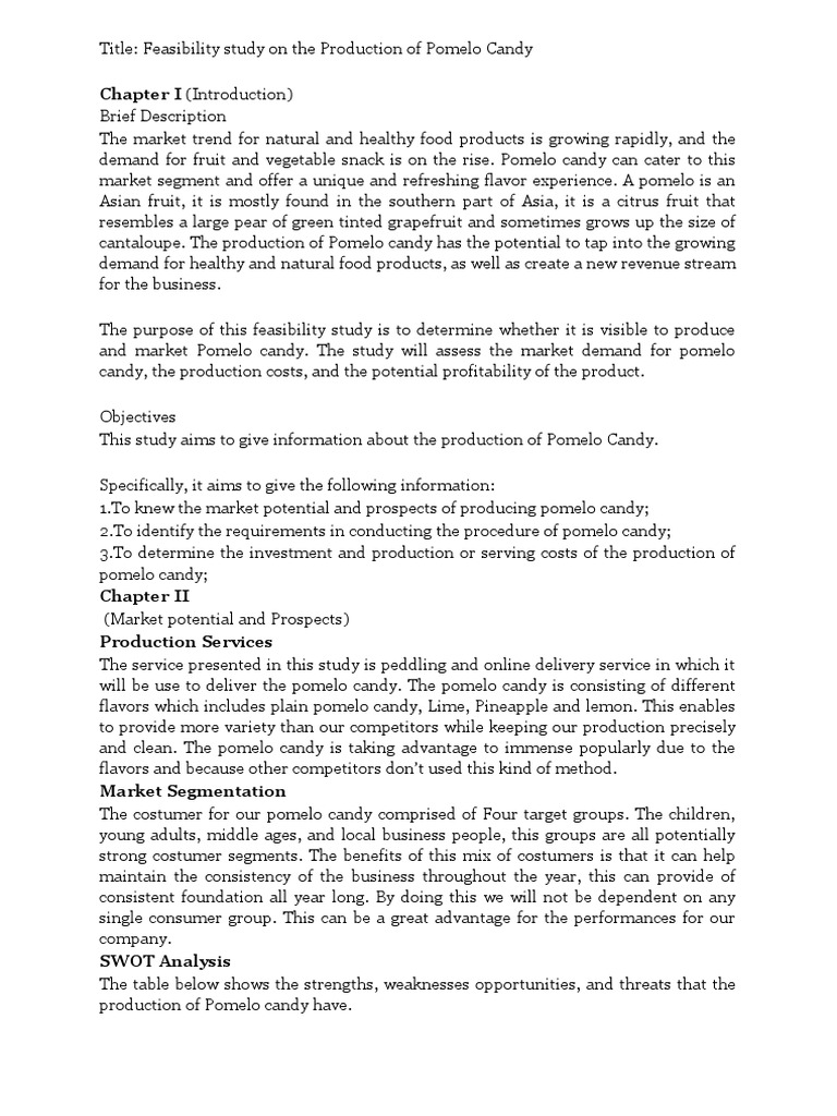 and market Pomelo candy. The study will assess the market demand for pomelo