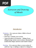 Direct Extrusion The direct extrusion process can be clearly seen in the schematic diagram below. Cylindrical aluminium alloy billets of cast or extruded manufacture are heated to between 450 and 500 before being loaded into a container and the billet squeezed through a die orifce using ram pressures of up to 680MPa. The die is supported by a series of back dies and bolsters so that the main press load is transferred to a front platen.