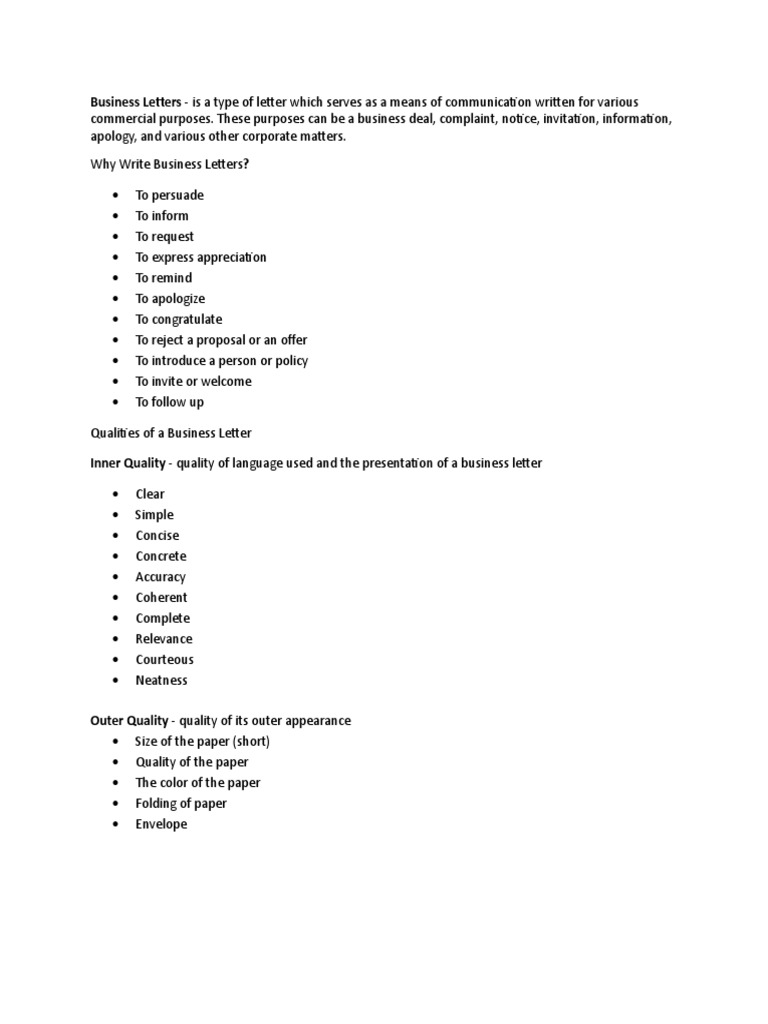 Business Letters - is a type of letter which serves as a means of communication written for various