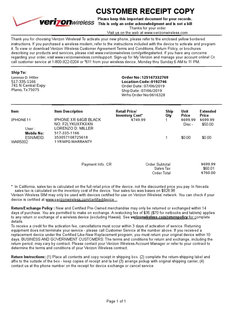 it. To view or download Verizon Wireless Customer Agreement Terms and Conditions, Return Policy, or brochures