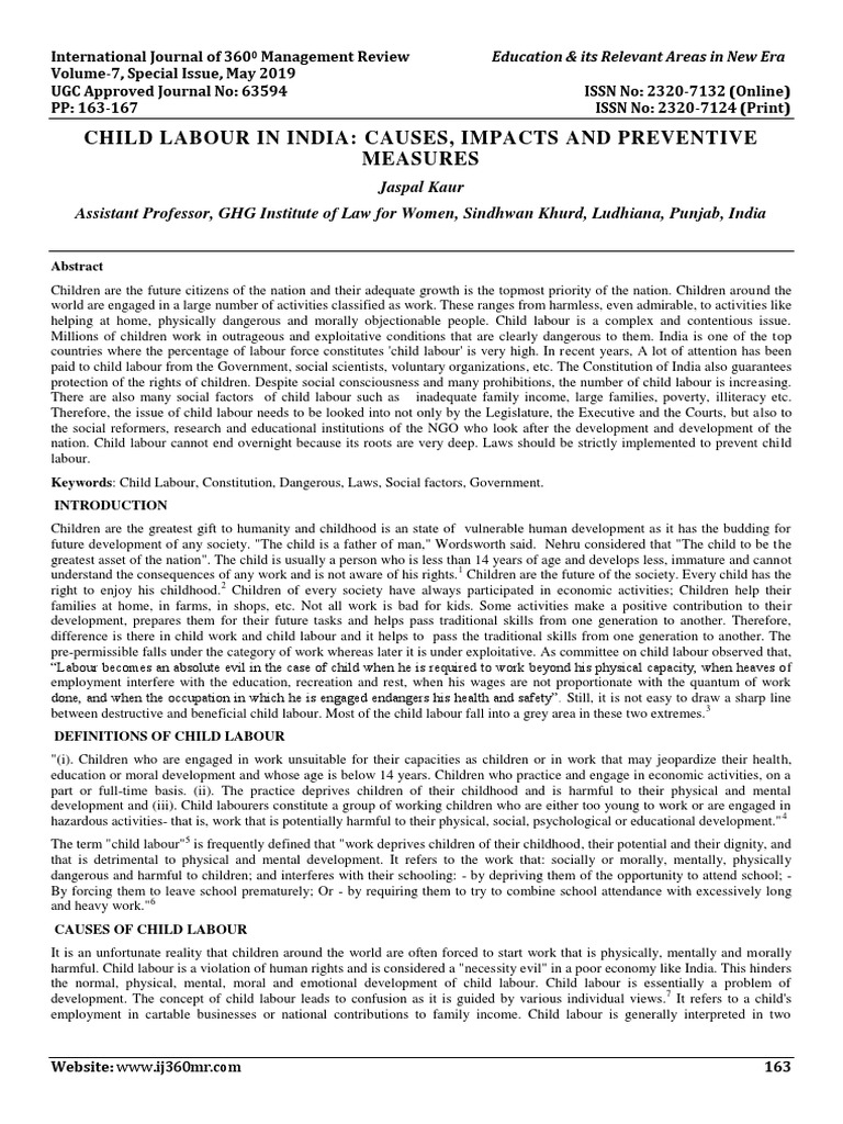 CHILD LABOUR IN INDIA: CAUSES, IMPACTS AND PREVENTIVE