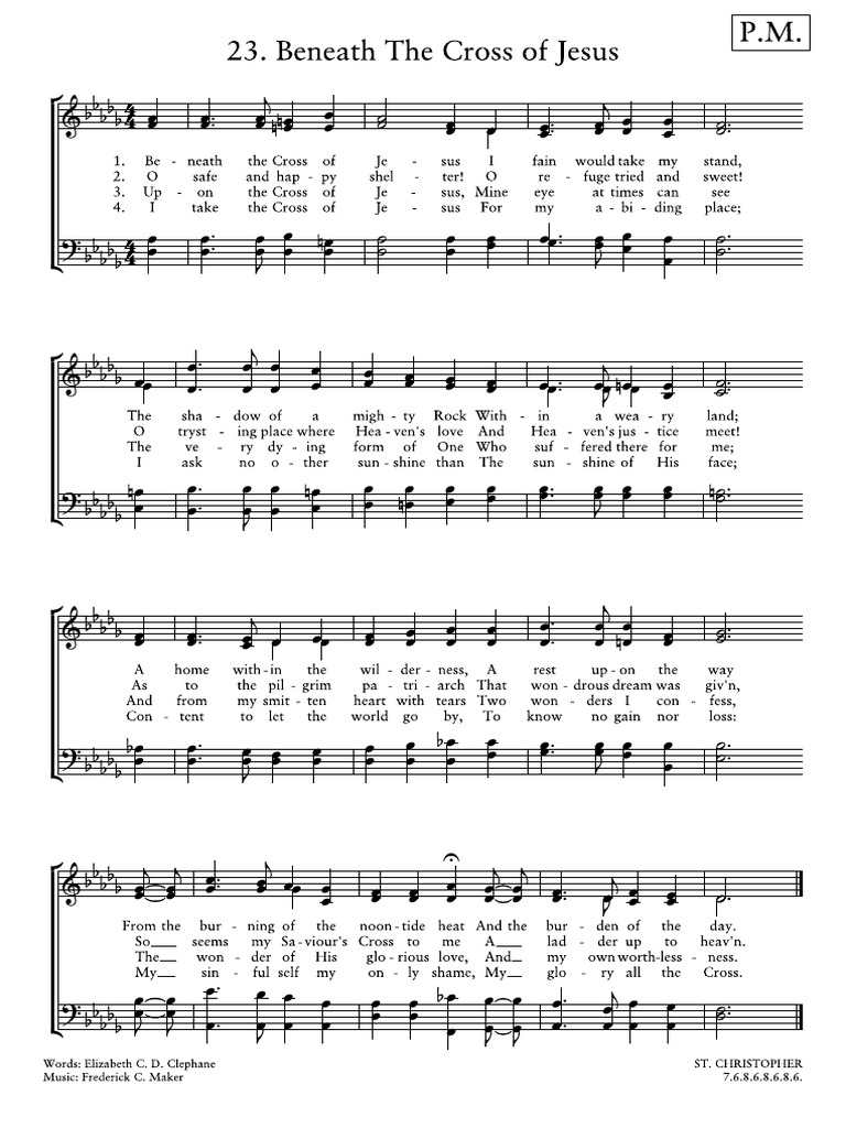 1. Be - neath the Cross of Je - sus I fain would take my stand,