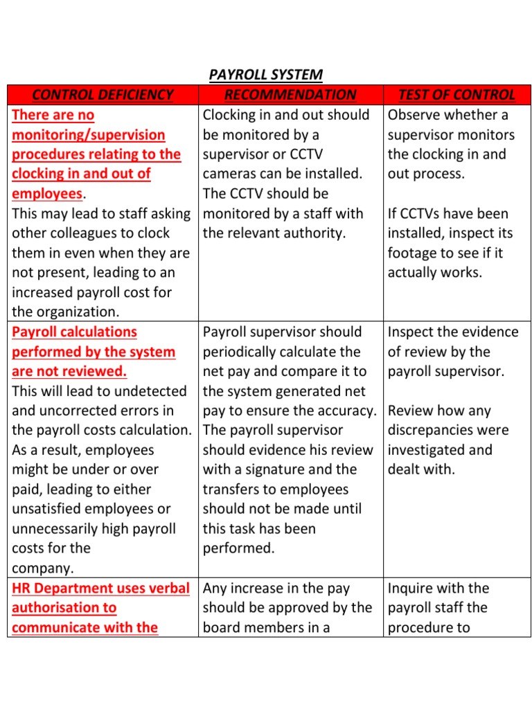 There is an increased risk of employees are paid. records, and vice