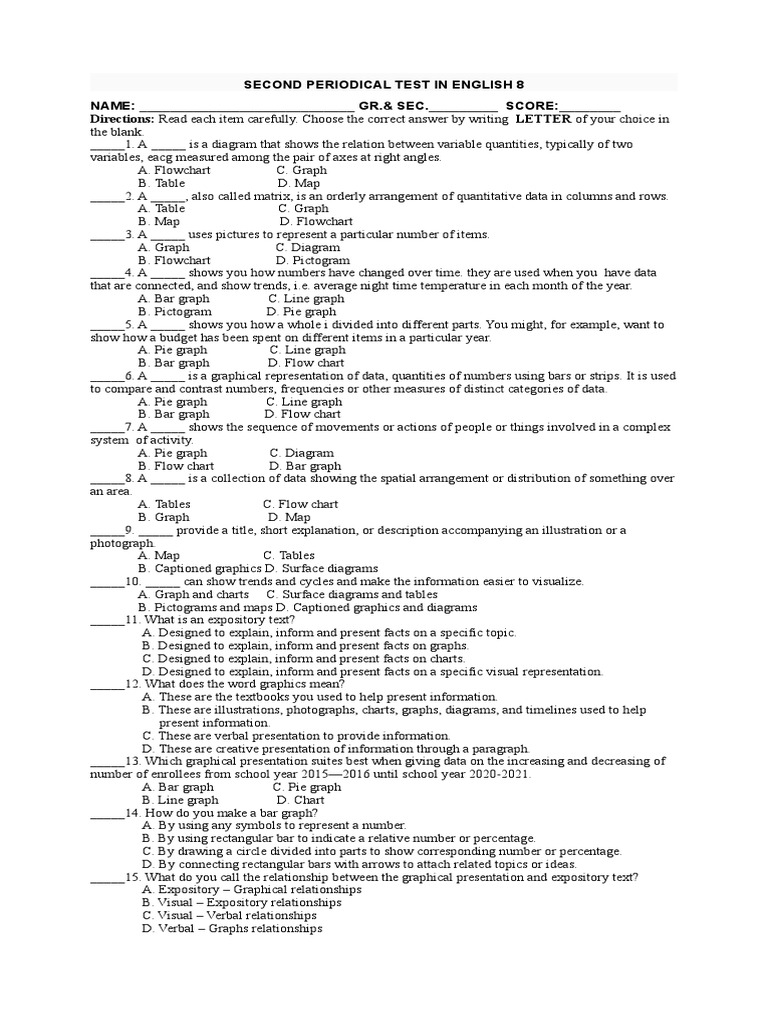 SECOND PERIODICAL TEST IN ENGLISH 8