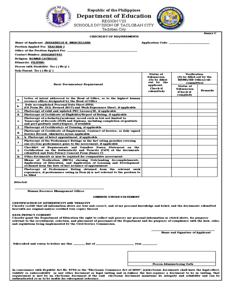 Checklist of Requirements and Omnibus Sworn Statement on the