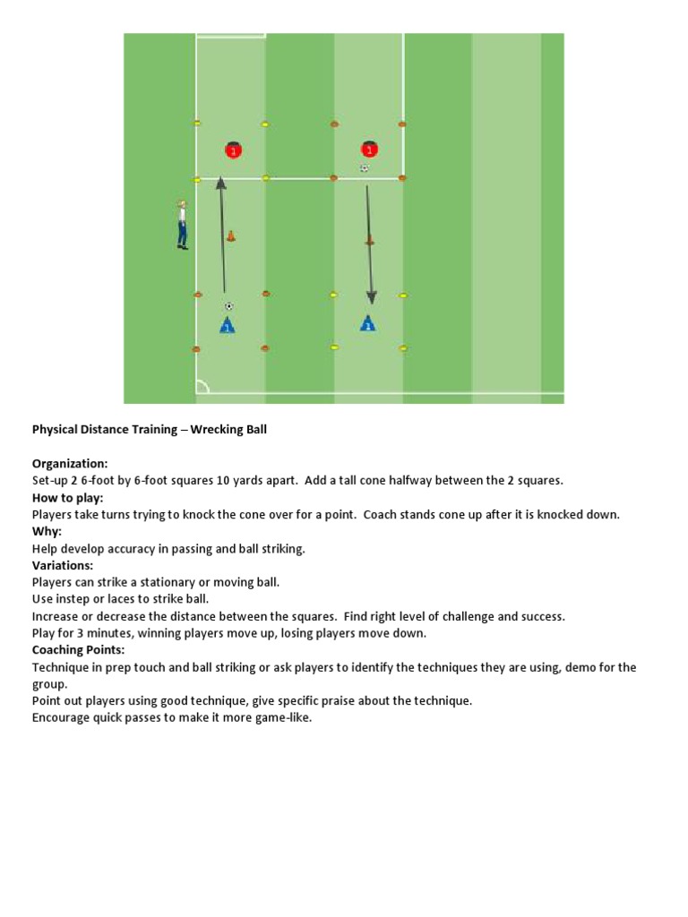 Set-up 2 6-foot by 6-foot squares 10 yards apart. Add a tall cone halfway between the 2 squares.