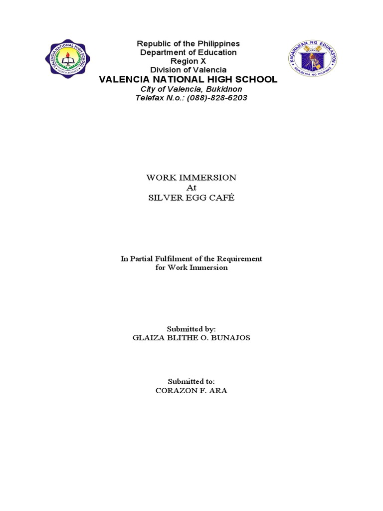 Enclosed is an endorsement letter from my work immersion teacher and my resume.