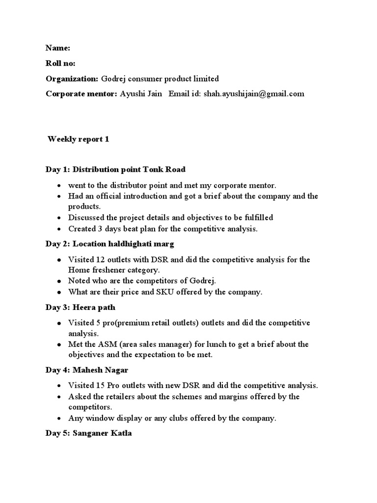 Made a report for the 4 days’ work done in the market