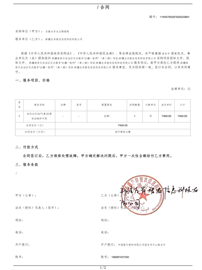 吾尔自治区定点服务“全疆一张网” (第二期)项目-新疆左岸智农信息科技有限公司 服务事宜,双方经协商一致,签订本合同,以资共同遵