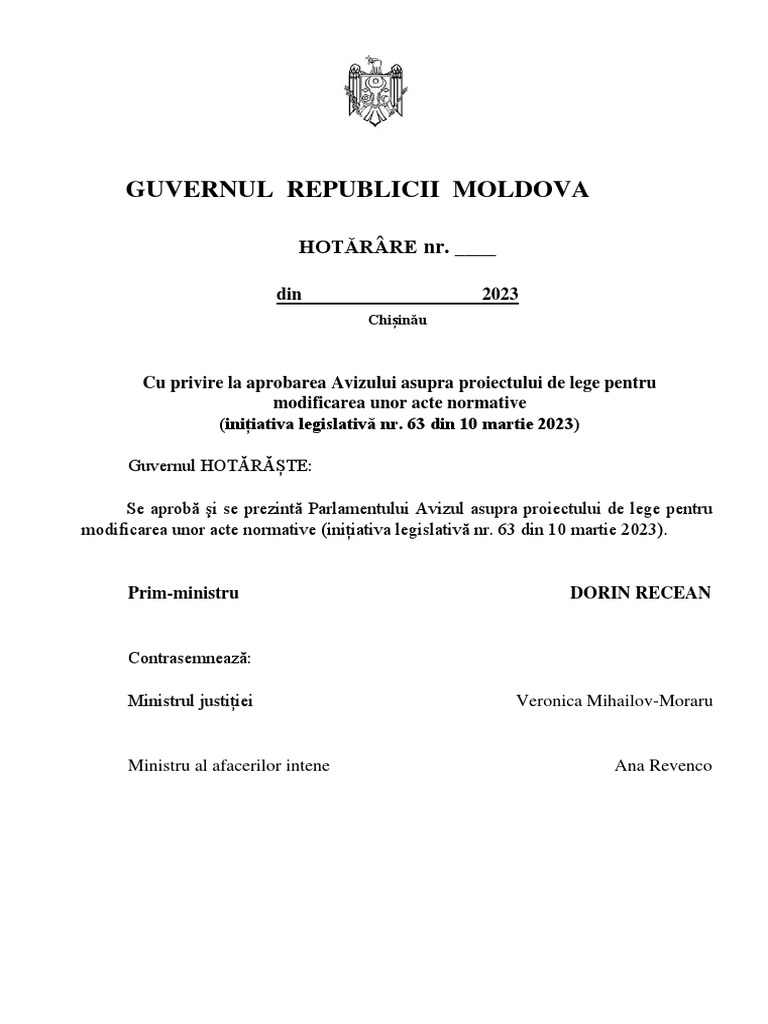 legislativă nr. 63 din 10 martie 2023), elaborat de către un grup de deputaţi în Parlament, şi comunică
