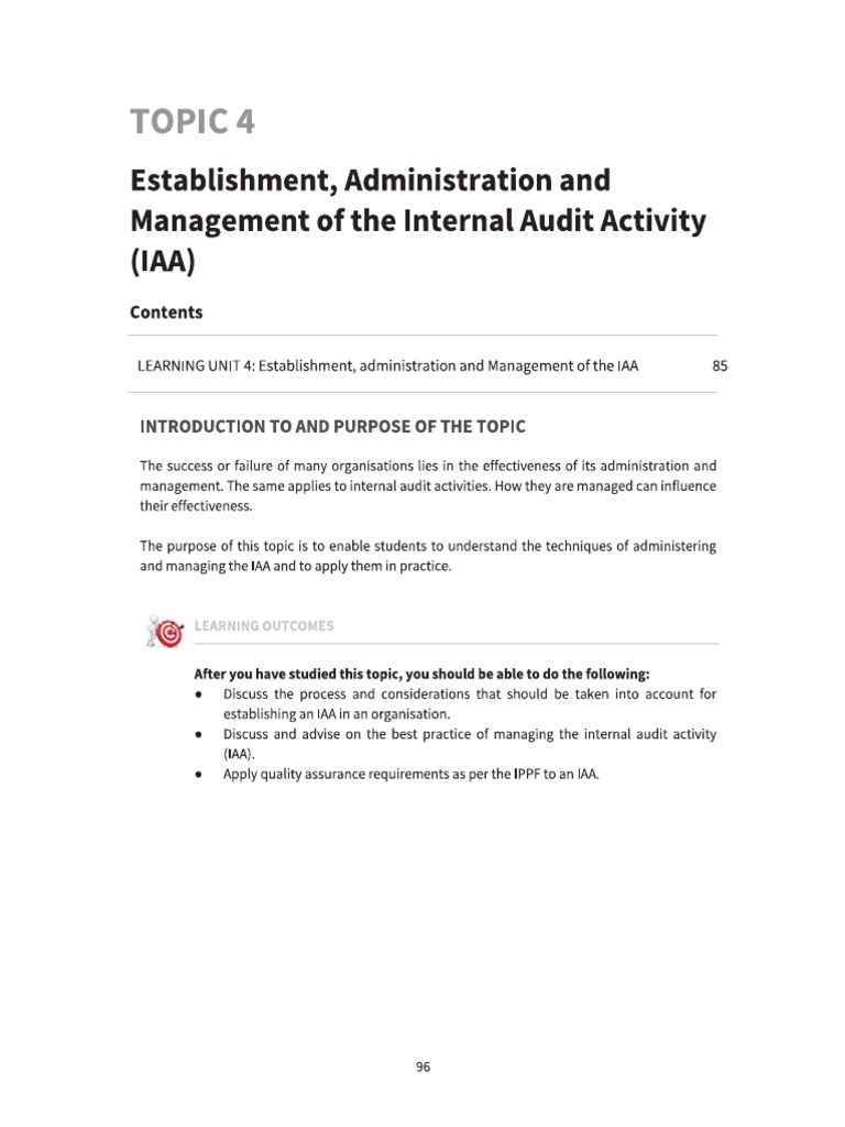 LEARNING UNIT 4: Establishment, administration and Management of the IAA 85