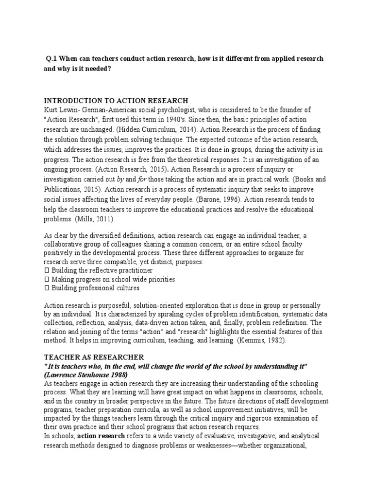 research are unchanged. (Hidden Curriculum, 2014). Action Research is the process of finding