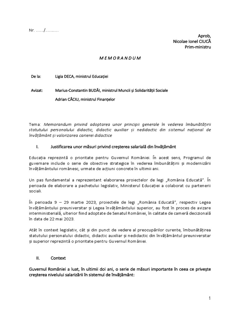 I. Justificarea unor măsuri privind creșterea salarială din învățământ