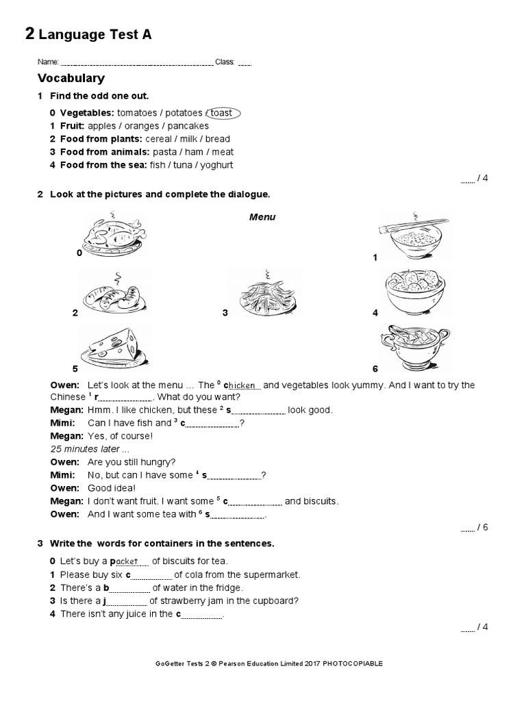 GoGetter Tests 2 © Pearson Education Limited 2017 PHOTOCOPIABLE