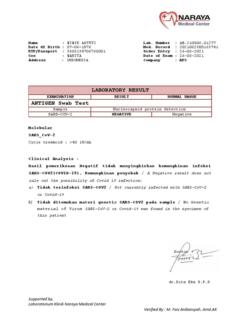 KTP/Passport : 3603134706760001 Order Entry : 26-06-2021