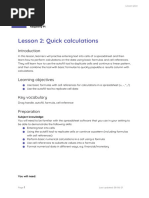 Lesson Plan - Modelling Data - Spreadsheets - Quick Calculations - Lesson 2