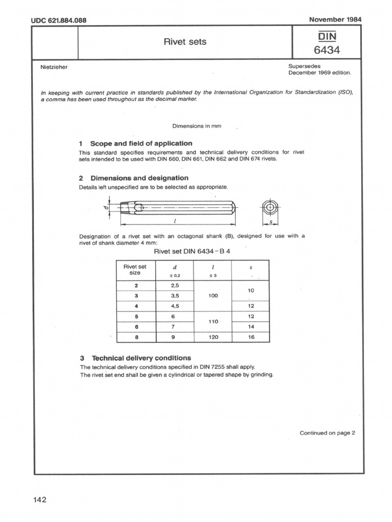 sets intended to be used with DIN 660, DIN 661, DIN 662 and DIN 674 rivets.