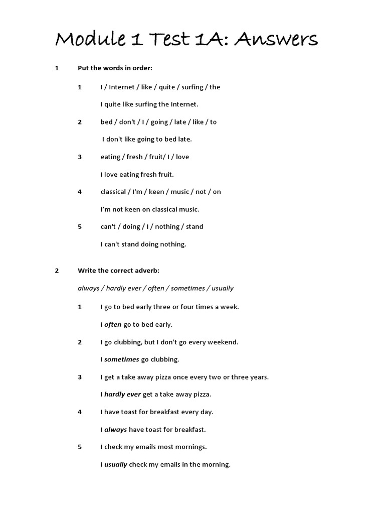 4 My father often has a nap on the sofa on Sunday afternoons.