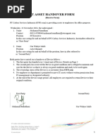 The below asset is being handed over to you to enable you to perform your duties in an efficient