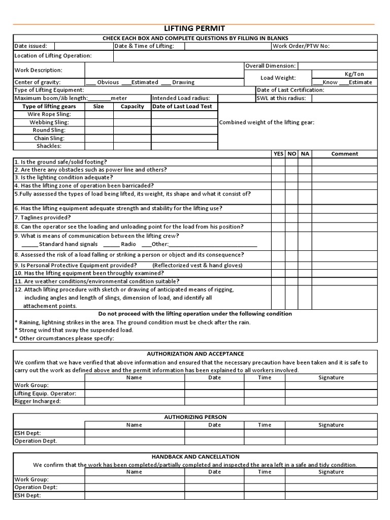 LIFTING PERMIT
