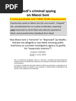 Tehelka - India's Independent Weekly News Magazine intelligence chief GC Raigar was away on leave, the DGP had wanted somebody from the intelligence department to be present to provide answers on the intelligence failure behind the Sabarmati carnage at Godhra and tackle any other intelligence related query that might have come up at the meeting. Bhatt, however, refused to say more. He told the SIT that since the probe against Modi was merely at a preliminary stage, he would not like to speak up. However, if a criminal case was registered he would be duty bound to testify and tell the truth. (Given the purely exploratory nature of the SITs mandate, as a serving officer, Bhatts rationale was that speaking out at this stage would jeopardise his career without necessarily having any impact.) Curiously, however, just his willingness to testify at a later stage had a significant fallout pointing to all the wheels grinding behind the scenes. When inquiry officer Malhotra examined Narendra Modi on 25 March 2010, Modi made a strange slip. He admitted that he had called a law and order meeting at his residence on 27 February 2002, after his return from Godhra where he had gone to inspect the Sabarmati carnage. Asked about who was present, Modi named the seven officers, apart from himself, listed above. However, without further prompting from the inquiry officer, he went on to assert, Sanjeev Bhatt, the then DC (Int.) did not attend, as this was a highlevel meeting. Why did he bring up Bhatts name? The inquiry officer had asked him about who was present, not about who was not. Clearly, somebody had alerted Modi about Bhatts statement before the SIT. He had come prepared to contradict and discredit Bhatts version even when the question posed to him by the SIT officer had no reference of Bhatt. The other seven officers at the meeting have also displayed strange reactions when asked about Bhatts presence at the meeting. Swarna Kanta Verma and Ashok Narayan have pleaded loss of memory. PK Mishra, then principal secretary to the CM, has not refuted Bhatts presence but claims he cannot recollect if he was there. Out of the remaining four participants, only the then DGP Chakravarthi has categorically denied Bhatts presence. The other three have given vague replies. Despite this ambivalence, inquiry officer Malhotra concludes on page 149 of his report, Since Bhatts presence at the meeting is not proved his statement has to be ignored. Malhotra himself has called the testimonies of these seven officers unreliable because they were either rewarded by Modi or continue to serve in his government. When it comes to Bhatts presence at that crucial meeting then, why is Malhotra, quite bizarrely, willing to believe these otherwise unreliable witnesses? The SIT chairmans comments are equally inexplicable. He admits that Sanjeev Bhatt, SP, Intelligence told SIT that only if there was a legal obligation arising from the registration of a regular criminal case, he would be duty bound to disclose facts of discussion at the meeting. This indicated he had some reservations about what transpired on the occasion. But the chairman goes on to say, Bhatt is considered an unreliable witness, especially because no official, who is known to have definitely attended the meeting has spoken of his presence there. Also he was considered too junior to have been invited to such a high-level meeting. (Pages 3-4 of chairmans comments) Clearly, SIT swallowed Modis unsolicited information on Bhatt without a rational analysis. What makes this even stranger is that while the SIT team discards Bhatts claim of having attended the controversial meeting on 27 February 2002, they are quite happy to rely on other statements made by Bhatt elsewhere in the report. Narendra Modi illegally positioned his health and housing ministers in the police control room but its hard to find evidence of their interference: SIT In situations of an internal security crisis like a terror attack or communal riots, the police control room is akin to a war room. From the deployment of forces to coordination of scattered teams on the field to collection of field reports, it is from the control room that the police orchestrates its response. On 28 February 2002, as riots erupted across the state, in an extremely controversial and extra-legal move, Modi positioned two of his Cabinet ministers and their political staff in the Control Rooms. The massacres at Naroda Gaon, Naroda Patiya and Gulberg Society in Ahmedabad started at around 10 in the morning and continued till around eight at night. The state police failed to respond despite repeated calls for rescue by the victims. Under these circumstances, the presence of these ministers in the police control rooms becomes highly suspect. Page 30 of the report states: Sanjeev Bhatt, the then DC (Int.) has stated that he had attended a meeting at the CMs residence on 28 February 2002 along with DGP and ADGP (Int.) GC Raiger. (Raiger had cut short his leave and had reported back on duty on the morning of 28 February). After the meeting, he returned to his chamber on the second floor of Police Bhawan at about 1100 hours and shortly thereafter went to meet the DGP on the first floor of the same building. When he entered the DGPs chamber he found that, as instructed after the conclusion of the CMs meeting, two Cabinet ministers of Gujarat, namely, Ashok Bhatt and IK Jadeja had already arrived and were sitting on a sofa in the DGPs chamber. He further stated that GC Raiger, the then ADG (Int.) and Maniram, the then ADG (law and order) were also present there. Sanjeev Bhatt briefed the DGP and after taking tea he returned to his chamber. Shortly thereafter, Sanjeev Bhatt happened to go to State Control Room on the first floor to collect some documents and saw IK Jadeja and his support staff sitting in the chamber of Dy SP, Control Room. This leads to a very uncomfortable question. Inquiry officer Malhotra found the above narrative of