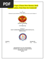 Technology and submitted in the Department of Civil Engineering of the Swami Keshvanand