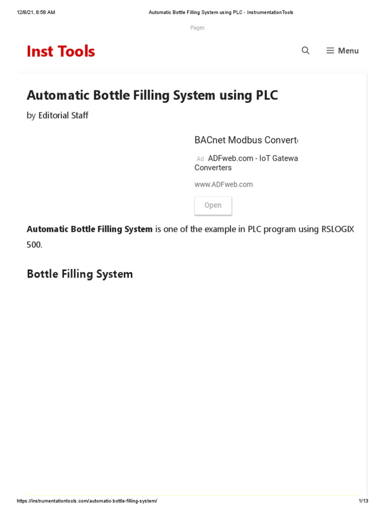https://instrumentationtools.com/automatic-bottle-filling-system/ 1/13