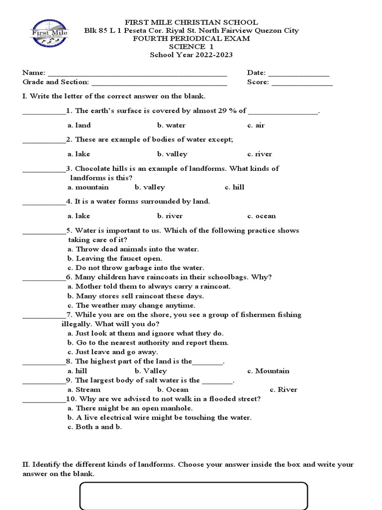 II. Identify the different kinds of landforms. Choose your answer inside the box and write your