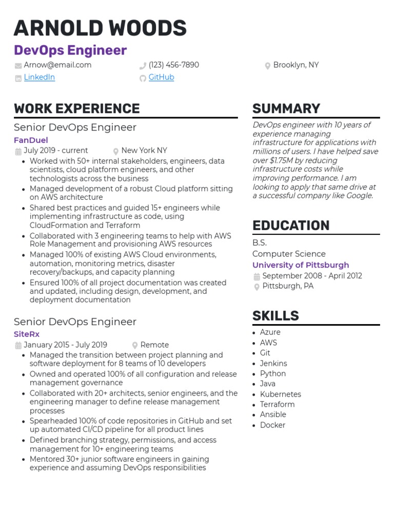 Senior DevOps Engineer DevOps engineer with 10 years of