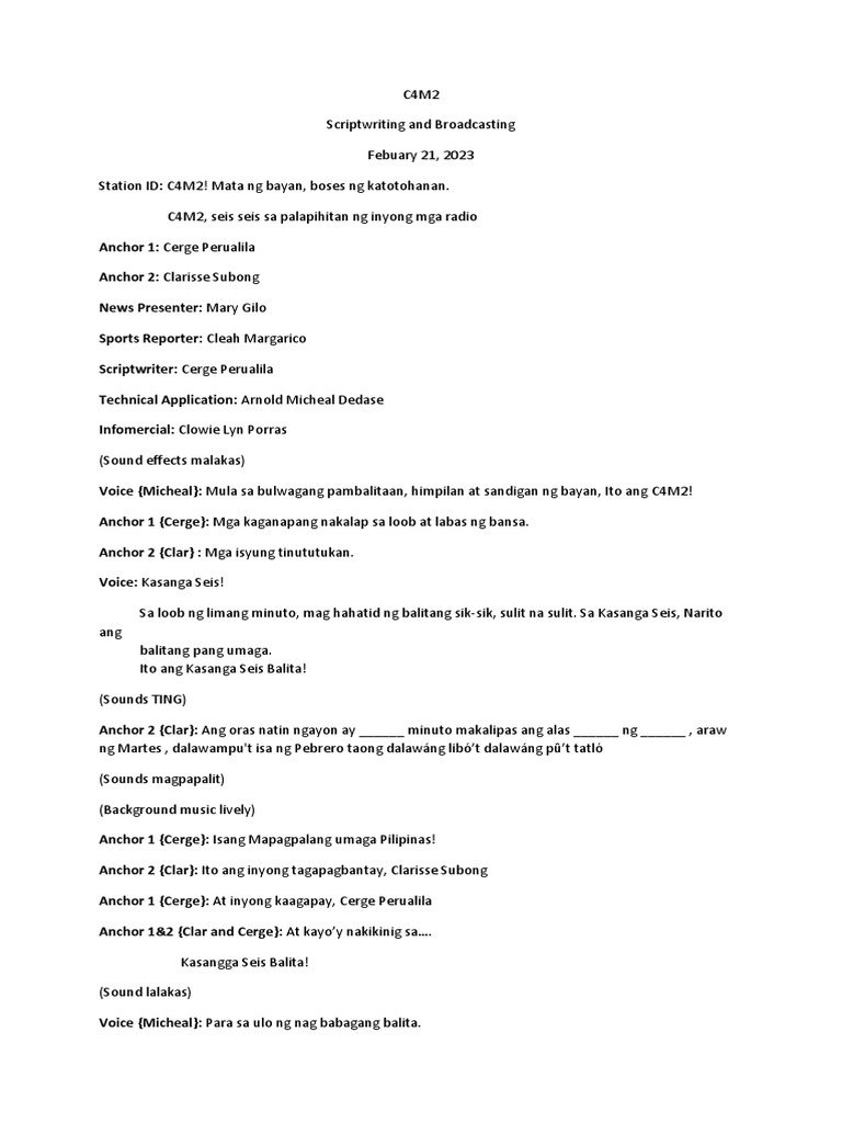 Anchor 1&2 {Clar and Cerge}: At kayo’y nakikinig sa….