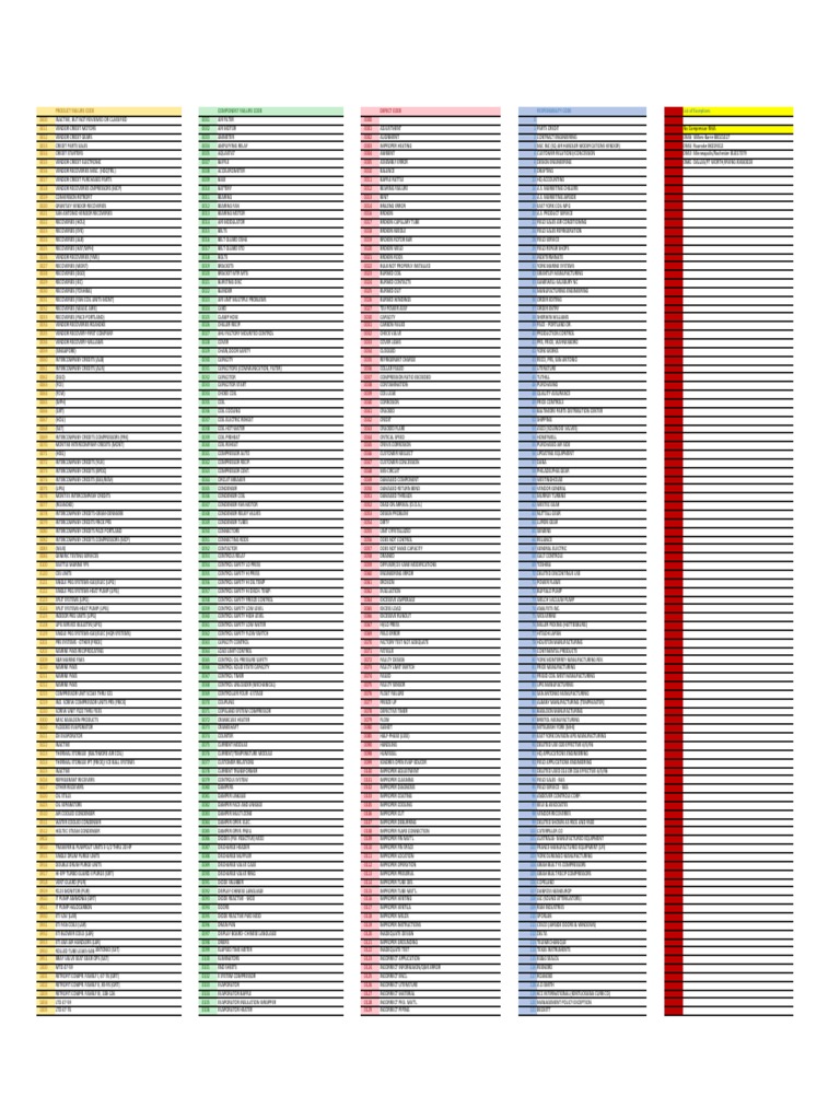FAILURE CODE COMPONENT FAILURE CODE DEFECT CODE RESPONSIBILITY CODE List of Exceptions